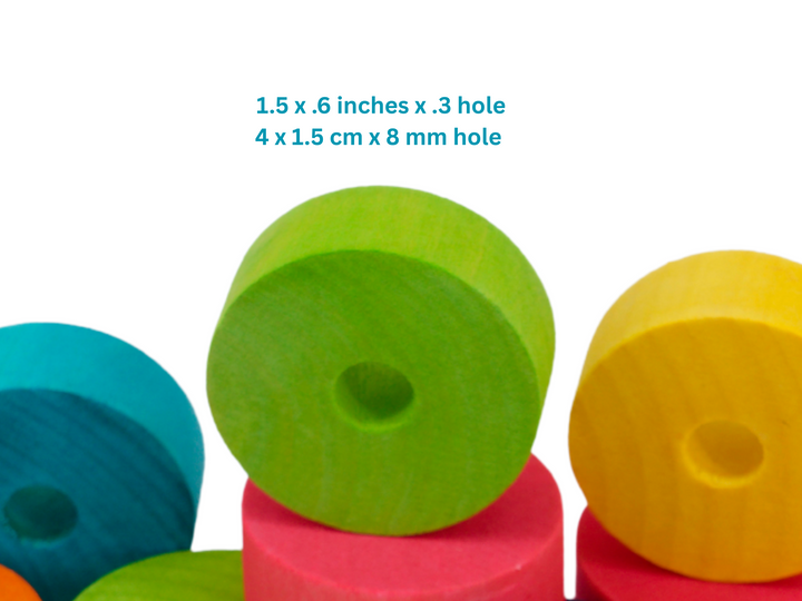 • 27 large round discs made of higher density wood - 1.6 x .6 inches / 4 x 1.5 cm