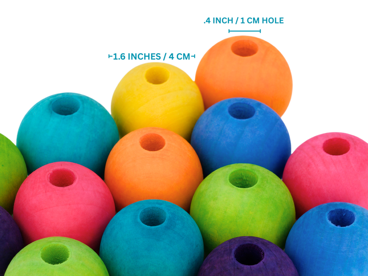 • 24 large round beads made of higher density wood - 1.6 inches / 4 cm diameter